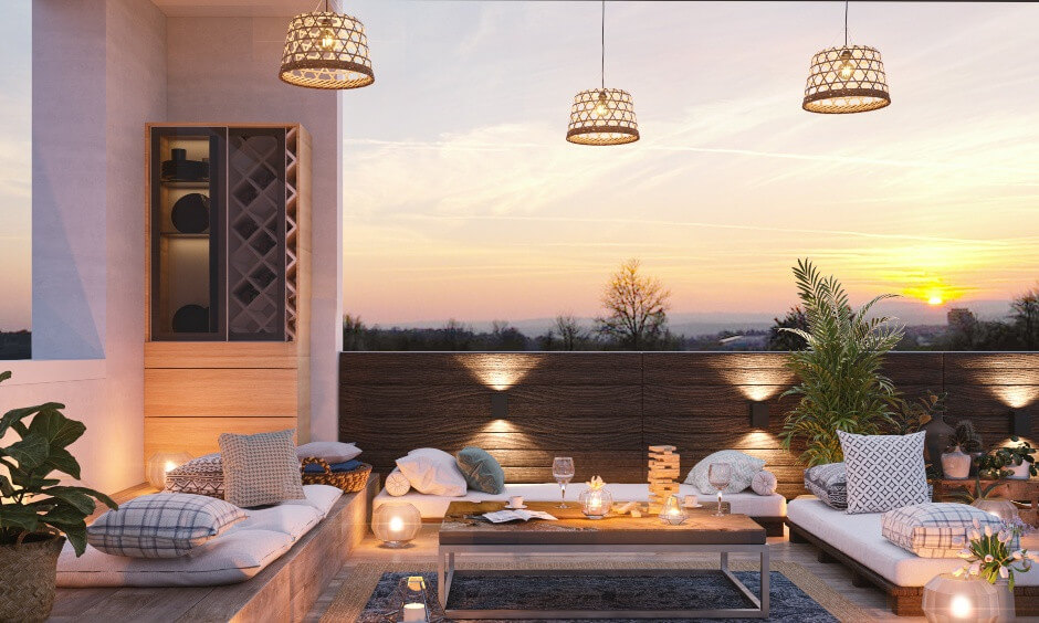 Including a lighting system will not let you down for just a moment. The rooftop is a romantic location at night for you to get closer, and perfect lighting would play a great part in it. Not just that, it provides a festive look for your terrace and is present as an ingenious decor design.