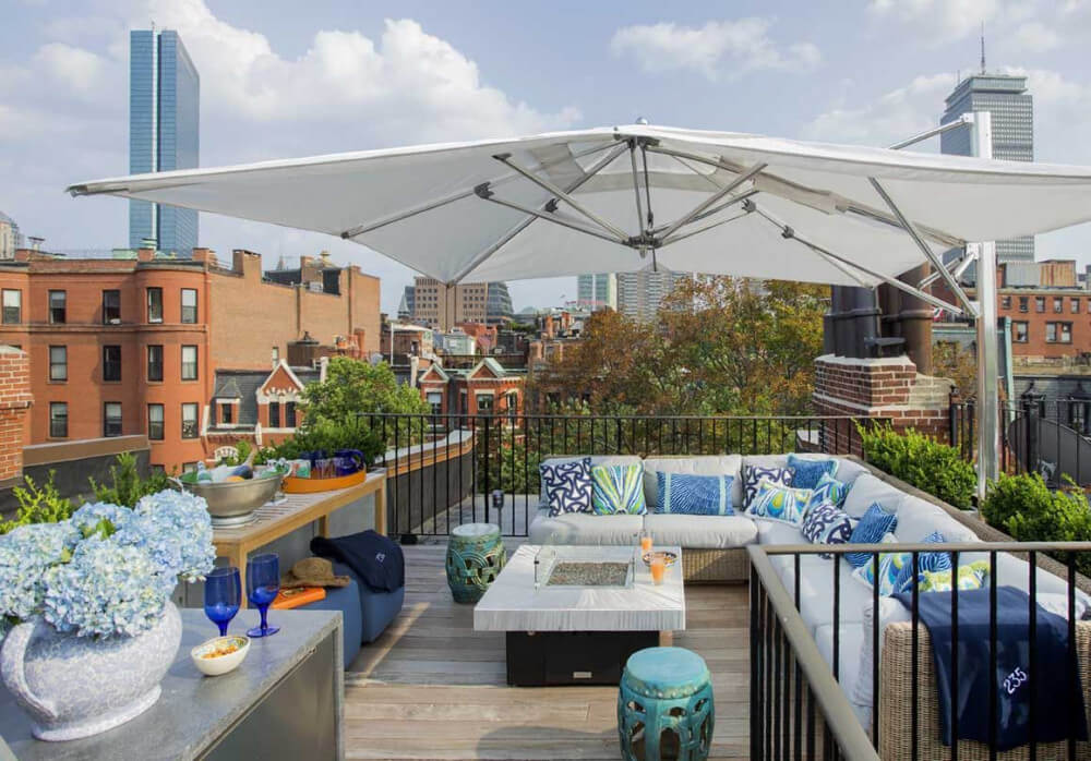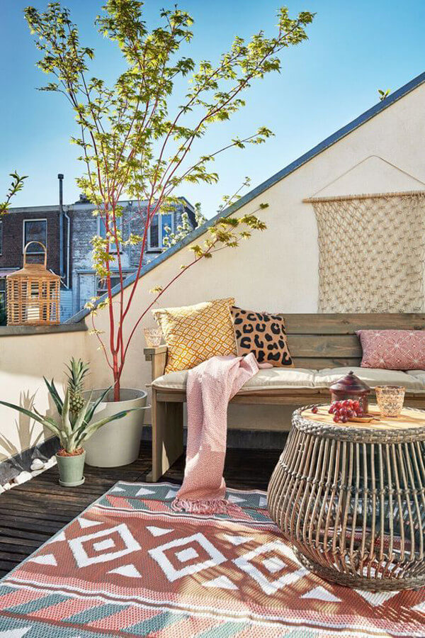 You can not leave your feet and your guest empty on the rugged floor. It would be a shame. Instead, install a chic rug that goes well with your rooftop’s vibe and the furniture’ color. There’s a variety of fabrics, patterns, colors, and sizes for you to choose from.