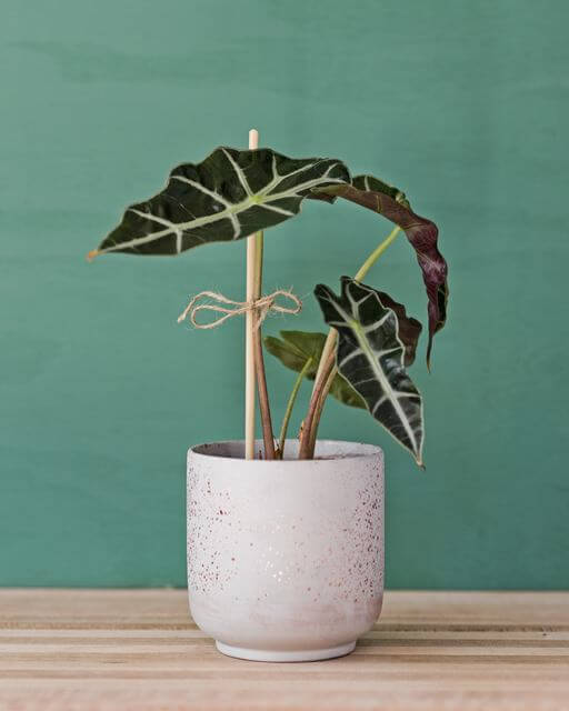 You can gently tie the stem with soft string or a twist-tie and guide it as it grows stronger. Stick one or two into the soil close to the base for instant stability.