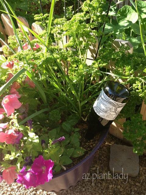 Image Credits: Birds and BloomsTurn your leftover wine bottles into clever self-watering tools for your houseplants. It s a lifesaver when you re away or just forgetful. Fill the bottle with water, drill a few tiny holes in the cap, then flip it upside down and push it gently into the soil.