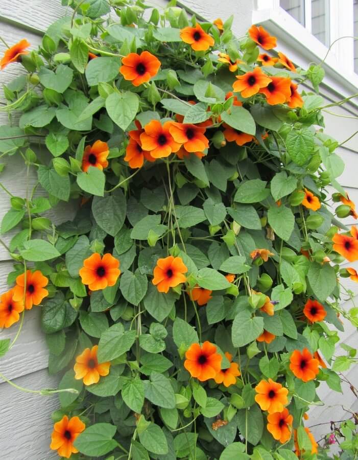 Superstar Black-Eyed Susan is a lively annual with bright orange petals surrounding dark centers. It climbs quickly, reaching 3â6 feet in one season. Plant seeds in warm soil and provide well-drained conditions.