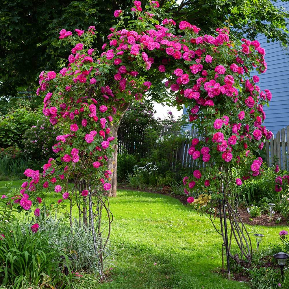 Water deeply and prune after the main bloom flush to encourage new growth. Their scent is captivating in the evening breeze. These roses turn an ordinary entrance into a romantic pathway.