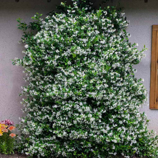 Star Jasmine produces clusters of starry white flowers with a delightful fragrance. Though it only grows 3â6 feet, it s perfect for small gates or trellises.