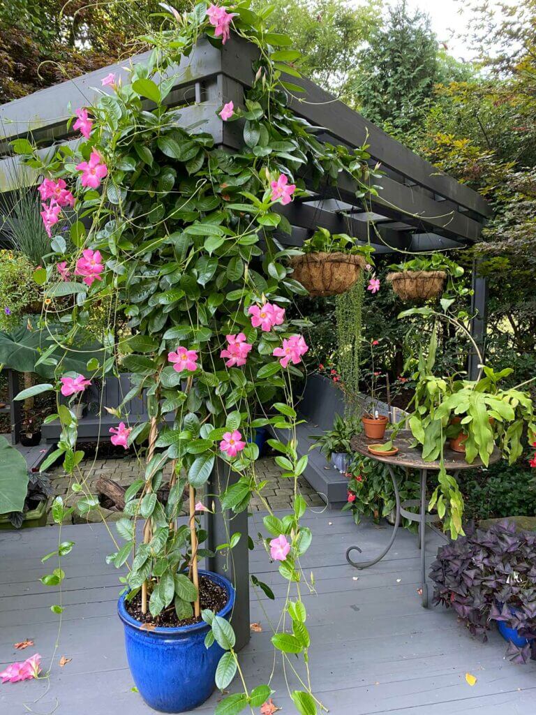 Dwarf Rangoon Creeper enchants with its clusters of star-shaped flowers that change from white to pink to red as they age. It s a fast grower, so prune regularly to control its spread.
