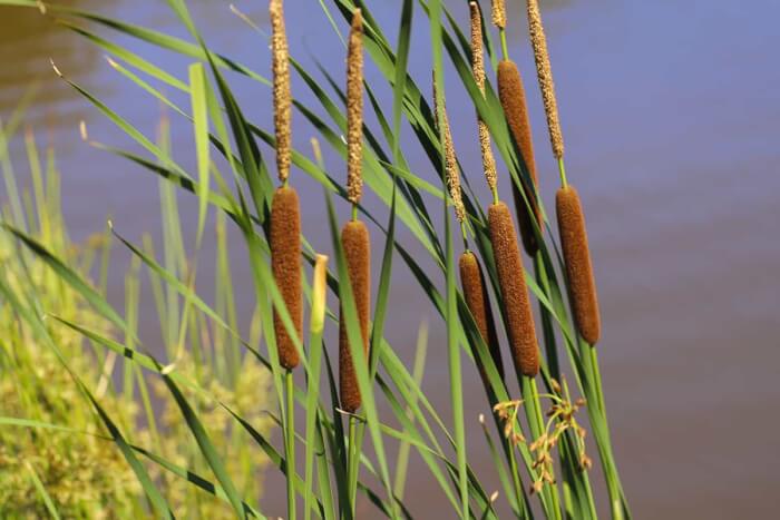 Dragonflies love hiding among the dense foliage while laying eggs. Plant cattails in shallow water or containers placed inside ponds for controlled growth.