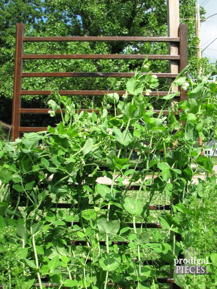 Give an old crib rail a new life by turning it into a beautiful trellis for your climbing plants. The evenly spaced bars are perfect for peas, beans, or flowering vines to weave through.