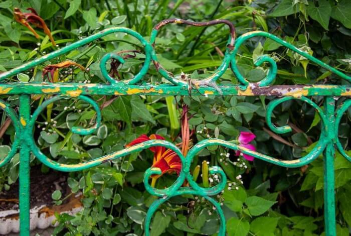 To use it, press the headboard firmly into the ground or secure it against a fence for extra support. You can leave it with its weathered patina for a rustic charm or repaint it in a cheerful hue that complements your garden.