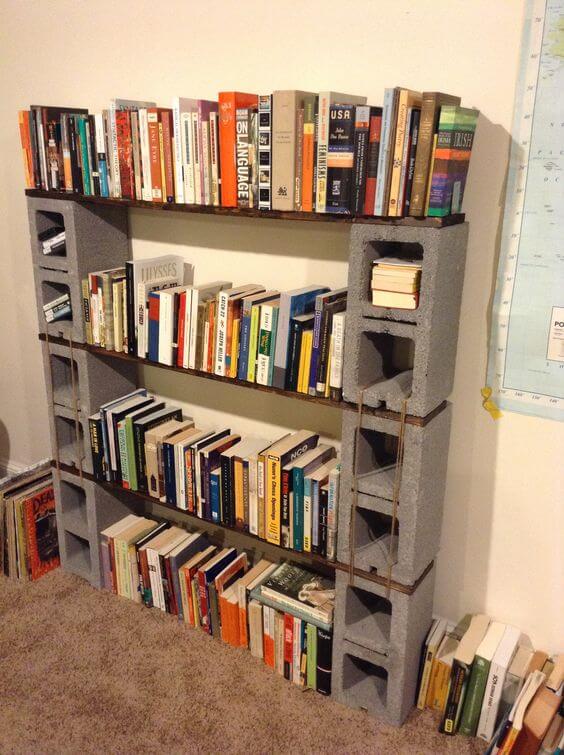 This DIY bookshelf is a dream for any book lover who wants something sturdy and budget-friendly. By stacking cinder blocks on the sides and sliding wooden planks between them, you create multiple shelves with plenty of space for novels, magazines, and décor. The height and width can be adjusted depending on how many books you want to display. You don t even need nails or glue, which makes it easy to move or reconfigure later. It s a simple project that blends functionality with a raw, industrial charm.