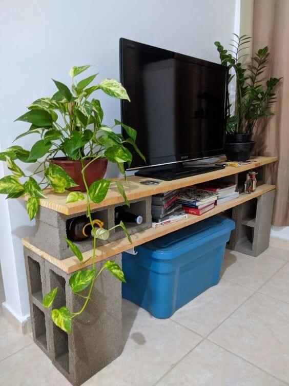 This clever TV stand shows just how practical cinder blocks can be for your living room. The blocks create a solid frame, while wooden planks form spacious shelves for your books, plants, and décor. You can even slide in storage bins or baskets underneath for extra organization. To make one, simply stack the blocks evenly on each side, place planks across, and balance your items. It s a budget-friendly alternative to store-bought furniture and adds a touch of modern rustic charm.