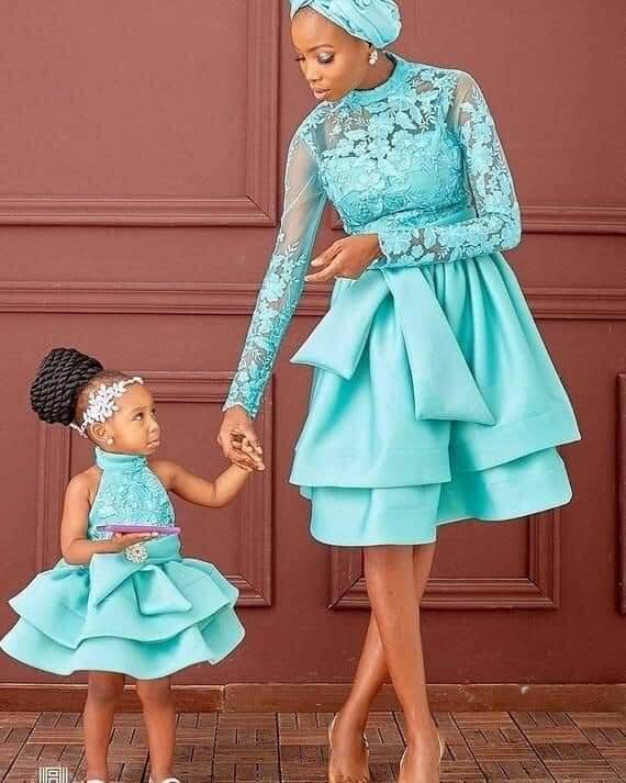 Source: UnknownGet ready to dive into the most enchanting “mommy-and-me” look, straight out of a fairytale! This duo is absolutely breathtaking in their matching aqua dresses that make us all wish we had a magical wand to create such beauty.