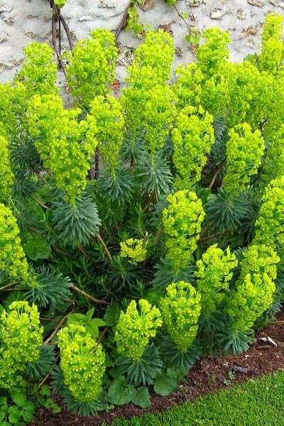 Euphorbia Characias is a bushy perennial with blue-green foliage and flower heads. It blooms from spring to early summer, and it is drought-tolerant and deer-resistant.