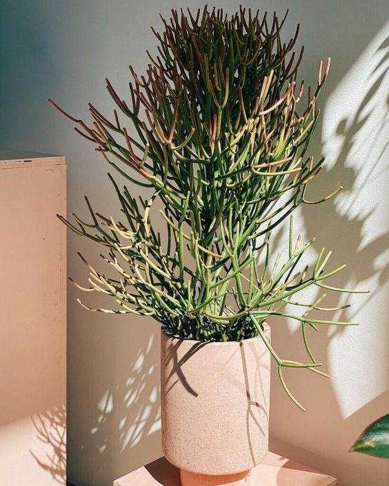 Euphorbia Tirucalli is native to Africa and Asia, and it grows in semi-arid tropical climates. It prefers bright direct light, well-draining soil, minimal water.