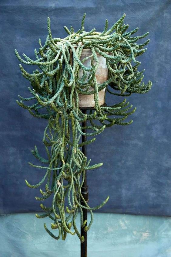 Euphorbia Caput-Medusae stands out in the euphorbia family with unique rosette of snake-like stems resembling Medusa’s hair. It can tolerate droughts but should be protected from frost.