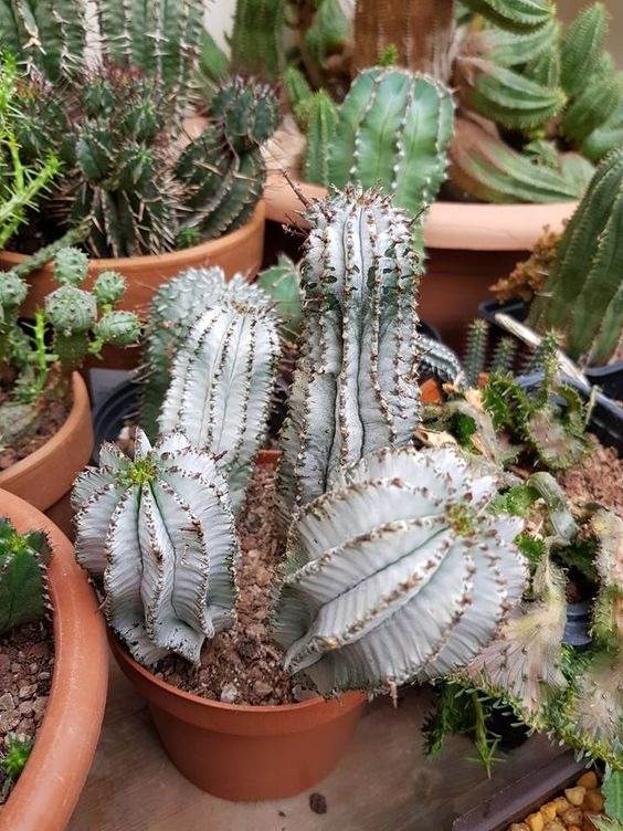 Euphorbia Cristata is actually a graft of two different Euphorbia species: Euphorbia lactea (the crest) and Euphorbia neriifolia (the rootstock). The crest can have various colors, such as green, blue-gray, silver, or pink, depending on the light and stress conditions.