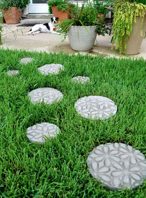 Image Credits: DreamalittlebiggerStepping stones help guide the way while adding a touch of character to your lawn or garden path. With concrete, you can mold your own in whatever shape or size fits your space.