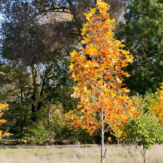This native of the Midwest is one of the tallest trees and one of the fastest-growing oaks, growing up to 75 feet at a pace of roughly 2 feet each year. In the fall, its long, densely lobed leaves turn a beautiful scarlet.