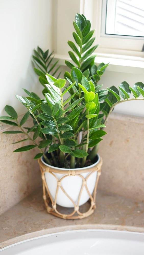 ZZ plant has shiny, dark green leaves that can grow up to 3 feet long. It can survive in low-light and drought environments.