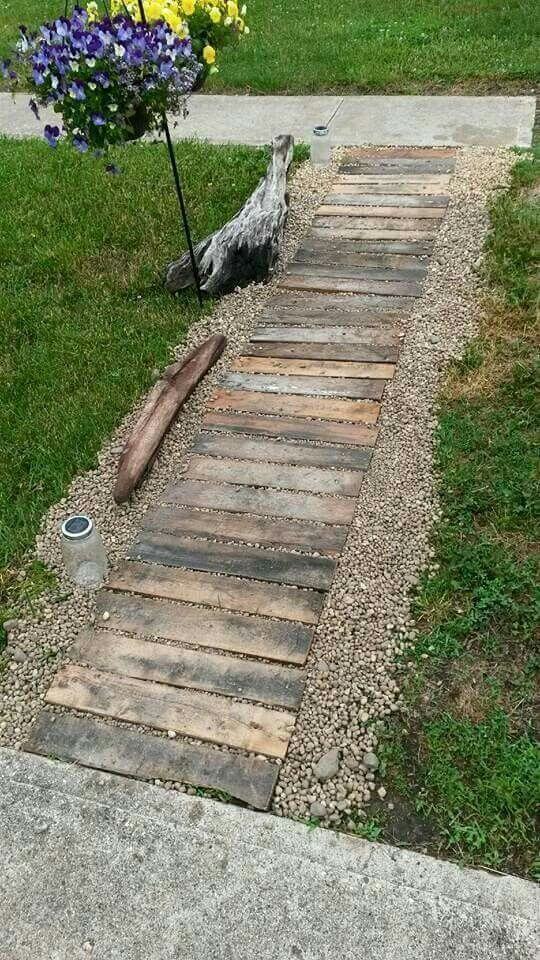 Repurposed pallets can make a rustic garden walkway that s easy to assemble. Dismantle old pallets and use the planks to form a straight or winding path. Secure them on a gravel base to prevent moisture damage.