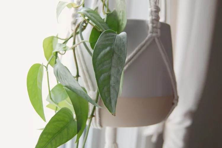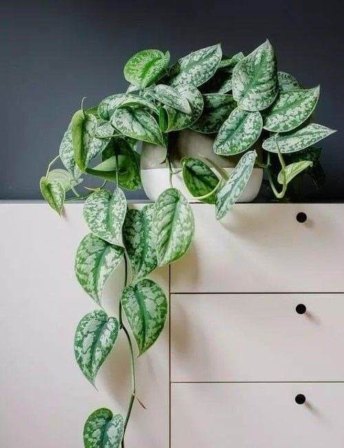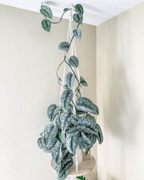 Satin pothos is characterized by green leaves that have a silvery shimmer and a heart shape. Its care is similar to other kinds of pothos. You should water it thoroughly when the top 2 to 3 inches of soil are dry.