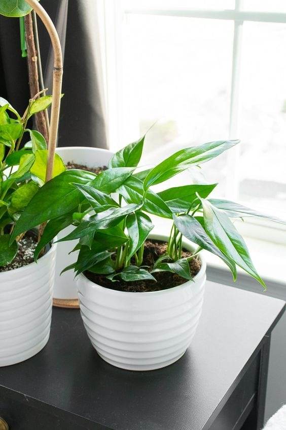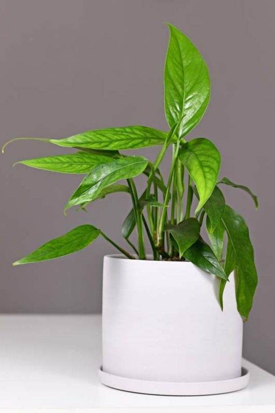 Jade pothos has solid green leaves that are thick and shiny. It is a low-maintenance and hardy houseplant that can purify the air and adapt to various light conditions.