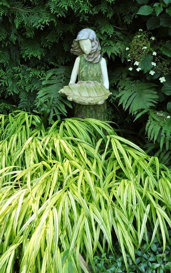 Japanese forest grass has a graceful plant that has lime-and-white variegated foliage that cascades over the edge of a bed or container. Its arching and lance-shaped leaves are about 10 inches long and form neat mounds at the base of the plant.