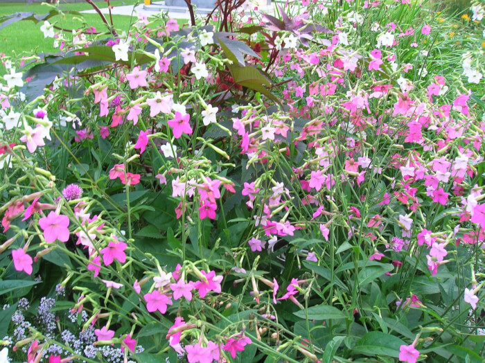 Nicotiana can be grown from both cuttings and seeds. It features pretty flowers that come in shades of white, red, pink, and green. Also, the flowers spread a sweet scent in the air.