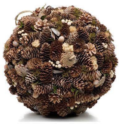 This pine cone sphere brings woodland beauty right into your home with its natural tones and cozy texture. Gather mini pine cones, acorns, and small seed pods to create a rich, earthy mix.