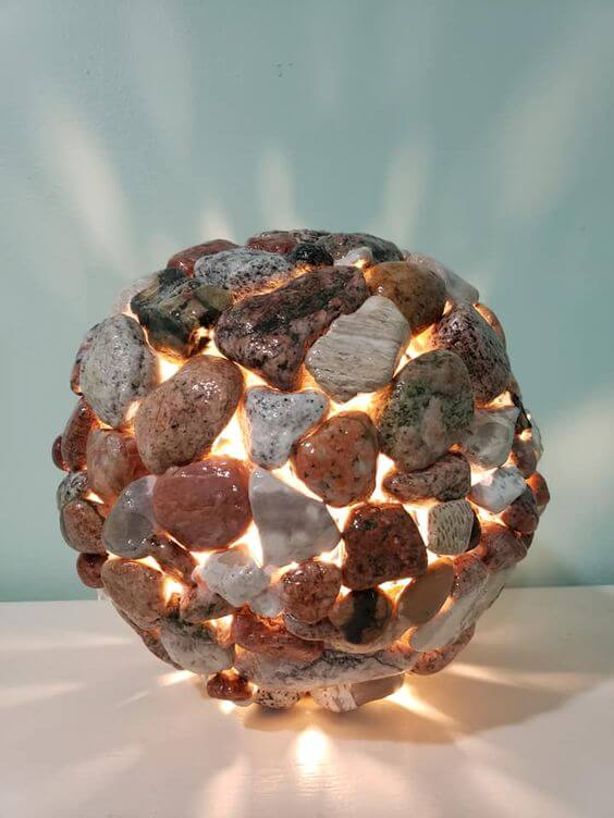 This glowing rock sphere looks like a piece of nature brought to life, adding both warmth and texture to your decor. Gather smooth river stones in varying shades and use a sturdy balloon or round mold as your base.