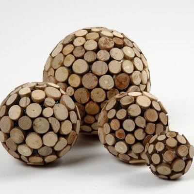 This wood slice sphere adds a cozy cabin-style touch that feels both natural and modern. To make one, cut small branches into even slices and glue them around a foam or plastic ball.