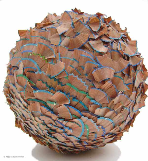 This pencil shaving sphere is a whimsical way to turn something ordinary into art. Gather colorful pencil shavings and glue them around a foam or paper ball in overlapping layers, just like petals.