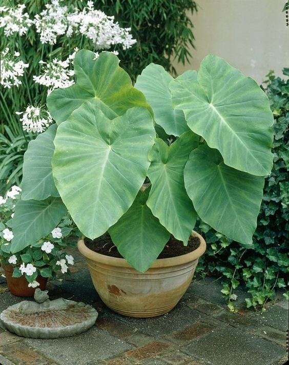Elephant ear’s leaves are incredibly impressive, measuring a staggering 3 feet (90 cm) in length and having a distinctive elongated heart shape. Elephant ears are easy to grow and care for, as long as they have moist, rich soil and partial to full shade.