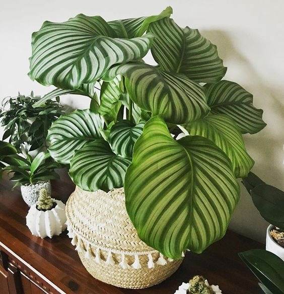 Round and large leaf prayer plant has broad, oval-shaped foliage, which has the potential to reach an impressive size of 12 inches across. It brings a tropical vibe to both bright and shady places.