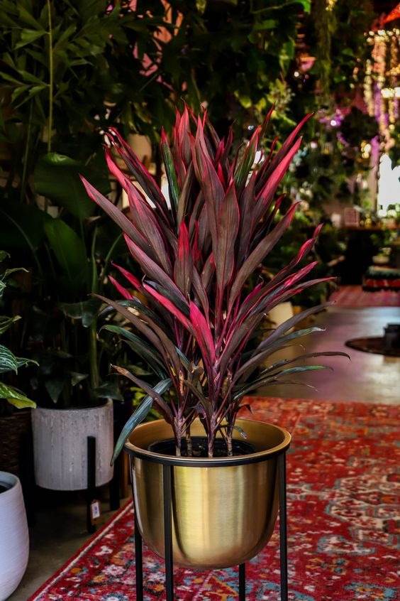 Ti plant is a tropical plant that has red, purple, or pink foliage. It can grow up to 10 feet tall and prefers warm and humid conditions.