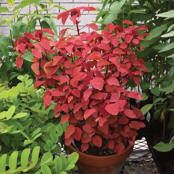 Tropical smoke bush is a small tree that has red or purple leaves and small white flowers. It can grow up to 15 feet tall and likes full sun and well-drained soil.