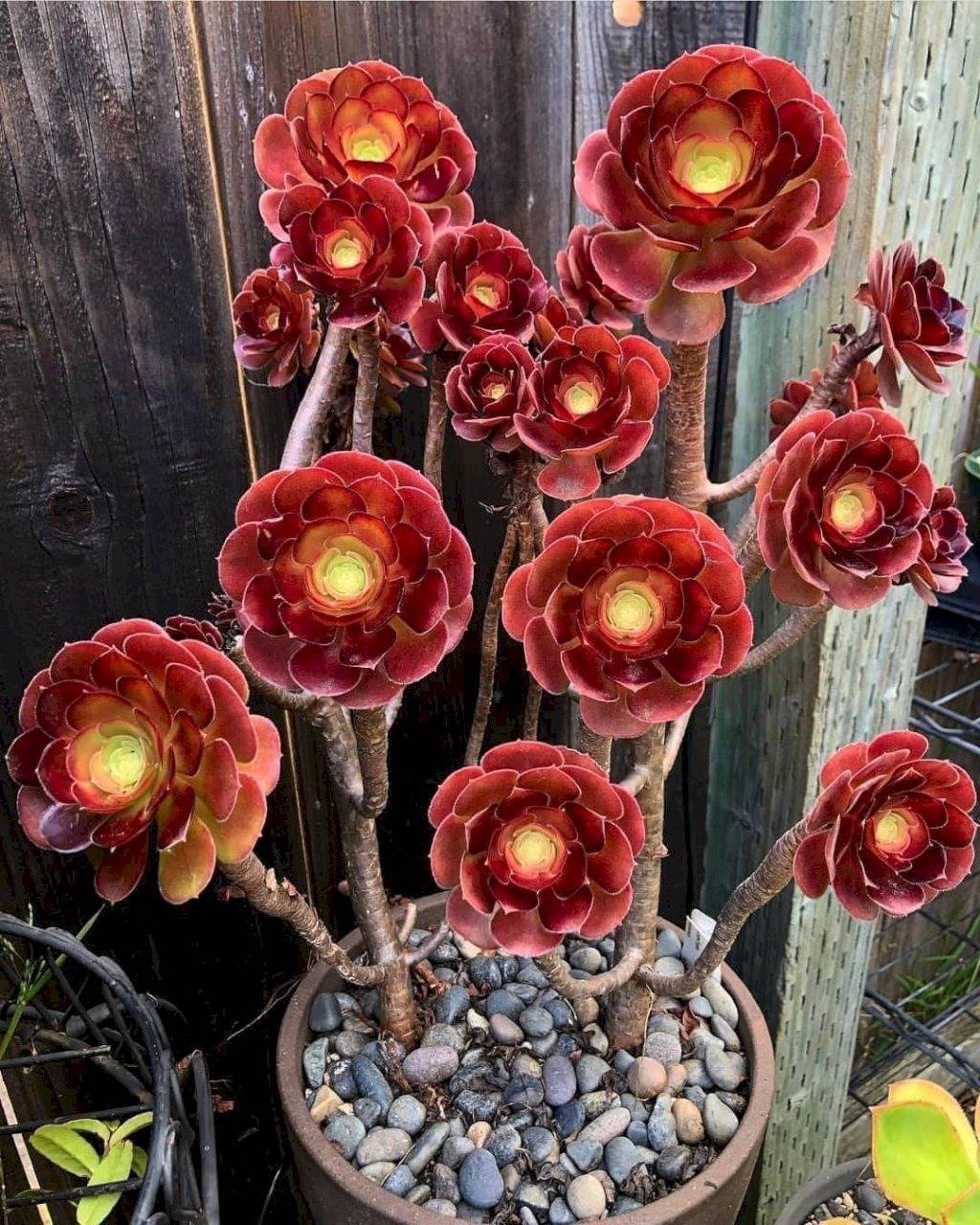 Echeveria is a genus of succulent plants that have rosette-shaped leaves in different colors and patterns. Some types of echeveria have red-colored leaves or flowers, which can make them very attractive and eye-catching.