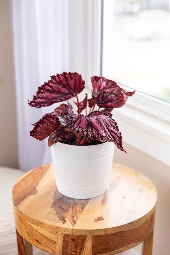 Begonia Brevirimosa with red variegation is a treasure for any plant collector. It prefers warm temperatures and high humidity, so you may need to mist it or use a humidifier.