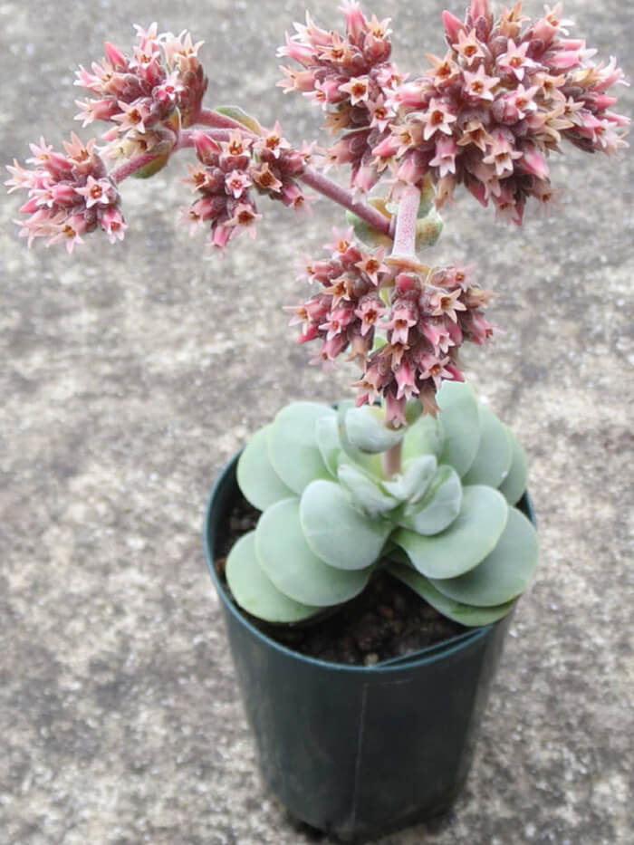 This lesser-known kalanchoe boasts soft, coin-shaped leaves with a powdery finish. It stays compact and tidy, great for small pots.