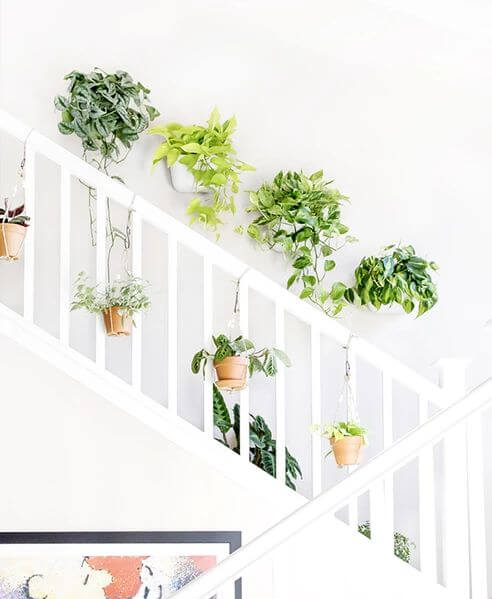 Source: BalconygardenwebLet your staircase wall bloom with this fresh and airy trailing plant setup. The white pots pop beautifully against the neutral wall, giving your vibrant greenery the spotlight.
