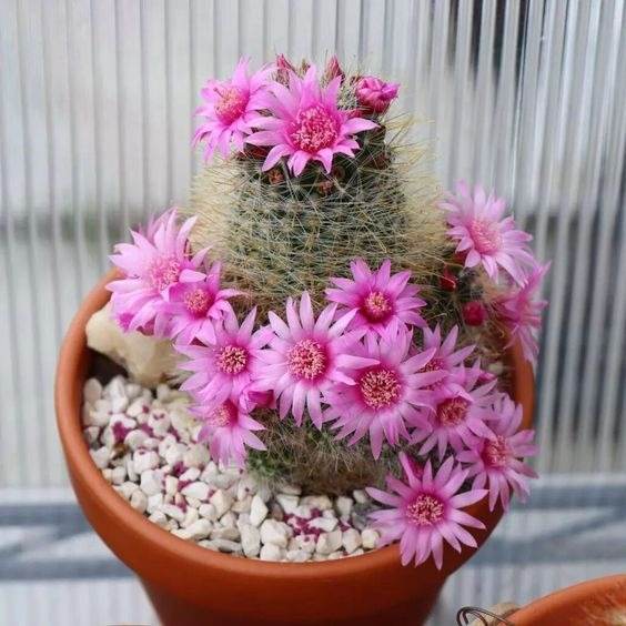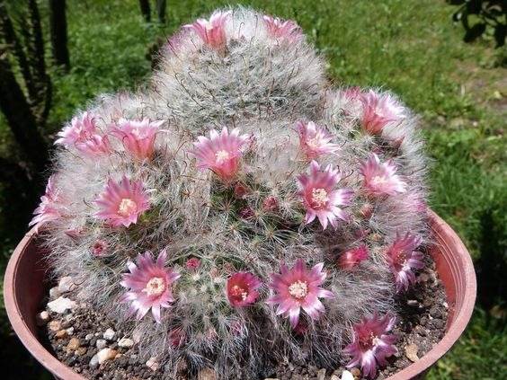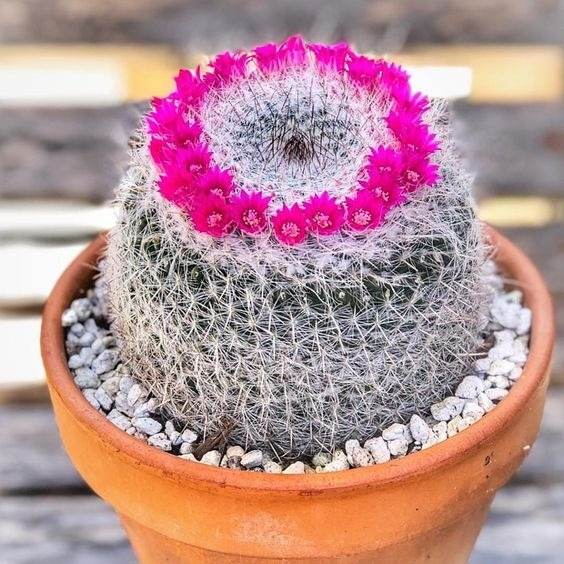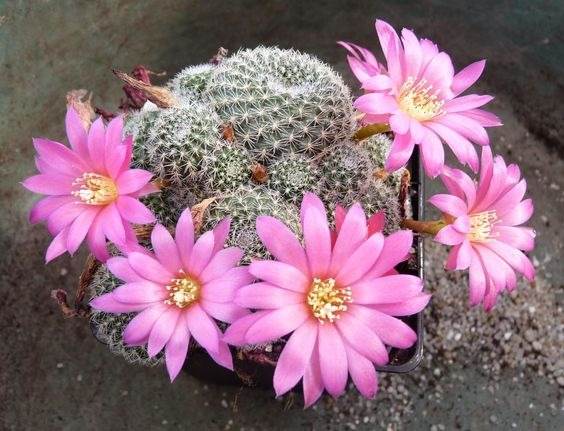 Rosy Pincushion Cactus is a lovely cactus with pink blossom that grows on a small cactus with clusters of spines. It blooms all year round under ideal conditions.