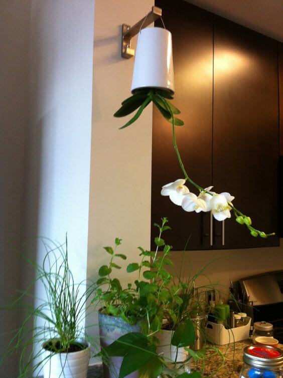 Perfect for small kitchens or minimalist interiors, the design frees up counter space while turning your orchid into living art.