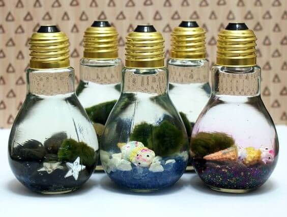 These creative ideas bring many different decorative styles instead of throwing them out, they can create a friendly-environment decor. With only unused light bulbs, you can create decorations for your living space and make them more attractive.