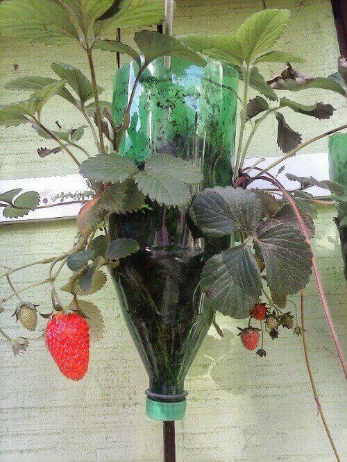 Hanging buckets, recycled bottles, wooden boxes, and upright frames make it easier to grow more berries without using much ground space.