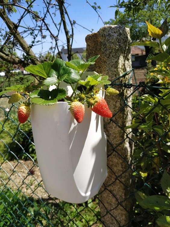 This clever strawberry planter is upcycled from a simple plastic jug, proving that you don t need fancy materials to grow fresh fruit. Its slim, vertical design hugs fences or posts tightly, making it ideal for cramped outdoor spaces.