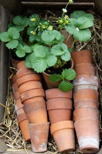 Old clay pots bring a rustic charm to strawberry planting that never goes out of style. Their porous surface allows for better airflow and drainage, which strawberry roots appreciate.