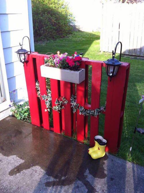 Line up short pallet boards and secure them in place. Paint it red or any bright color you like. You can also attach a planter box for flowers.
