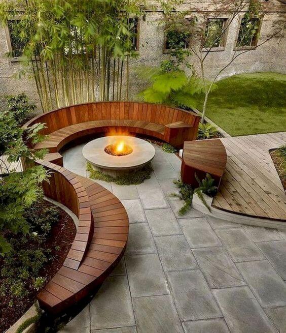Image Credits: EngineeringdiscoveriesBamboo brings an exotic and calming touch to this modern fire pit space. Its tall, elegant stems frame the area perfectly, adding vertical interest without overwhelming the scene.