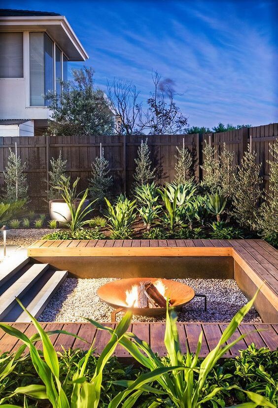 Image Credits: RecognizealeaderThe soft, vibrant greenery surrounding this fire pit creates a beautiful contrast with the warm glow of the flames. These plants not only add texture and color but also help define the space, making it feel like a cozy garden retreat.
