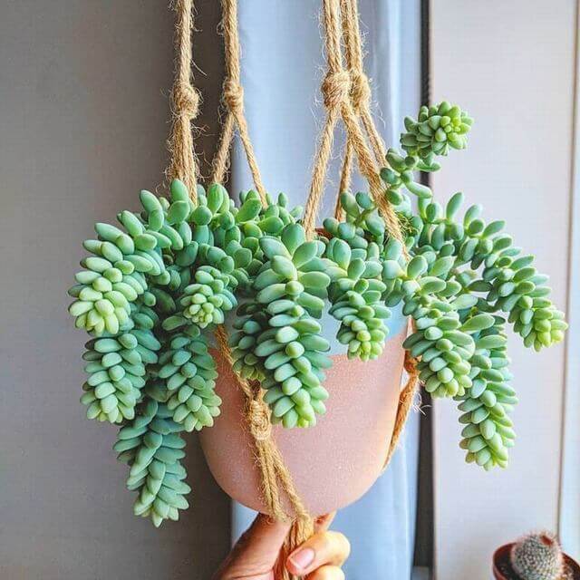 Burro s Tail is a succulent with plump, trailing stems that look like little braids. It s best in a sturdy macramé holder where it won t get bumped too often.