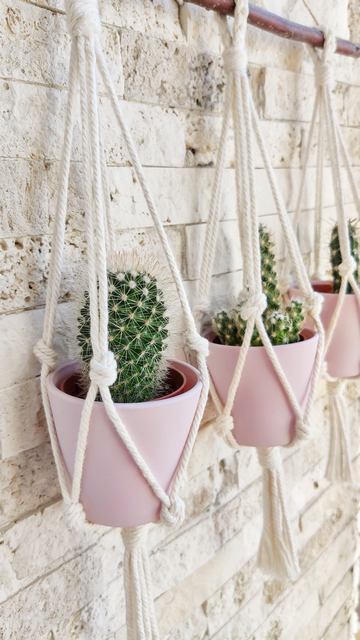 Cacti may be spiky, but their sculptural shapes pop beautifully in hanging planters. They don t trail, but they make a bold visual contrast in neutral macramé hangers.