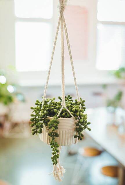 Let the vines tumble freely from your macramé holder to create a romantic cascade.